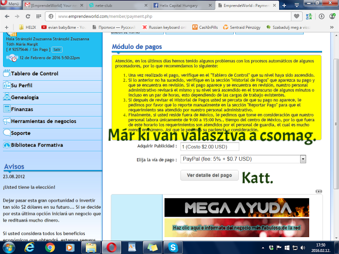 Nagyon fontos! Mindig csak akkor regisztráljon valaki a linkedre, mikor már aktív vagy, vagyis beért a web irodádba a 2$-od. Ezért csak ekkor küld el a ref. linkedet az érdeklődődnek, amikor ez megtörtént. Aztán csak akkor mehetsz tovább szintet, ha én felminősültem a következő csomagra. Akkor mindig szólok. Ezeket neked is be kell tartatni azokkal, akik hozzád regisztrálnak. Nekik szintén. Ha nem akkor elszáll az egész csoport, és ki tudja mikor lesz pénz. Ha viszont szépen mindenki halad, akkor 2-3 hét alatt megvan az 1000$.